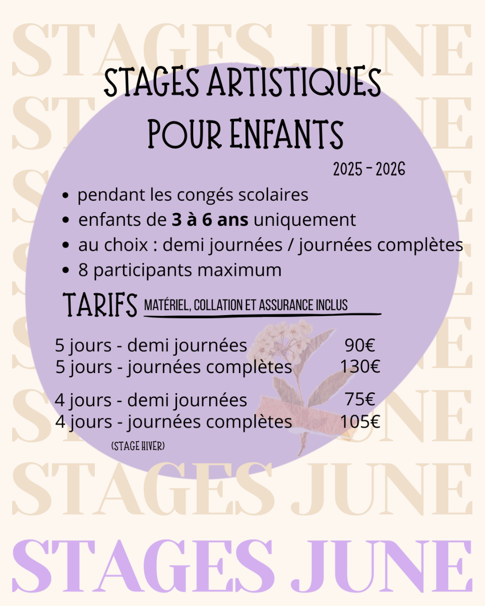 - demi journées : 75€ (collation, boissons, matériel, et assurance incluses)