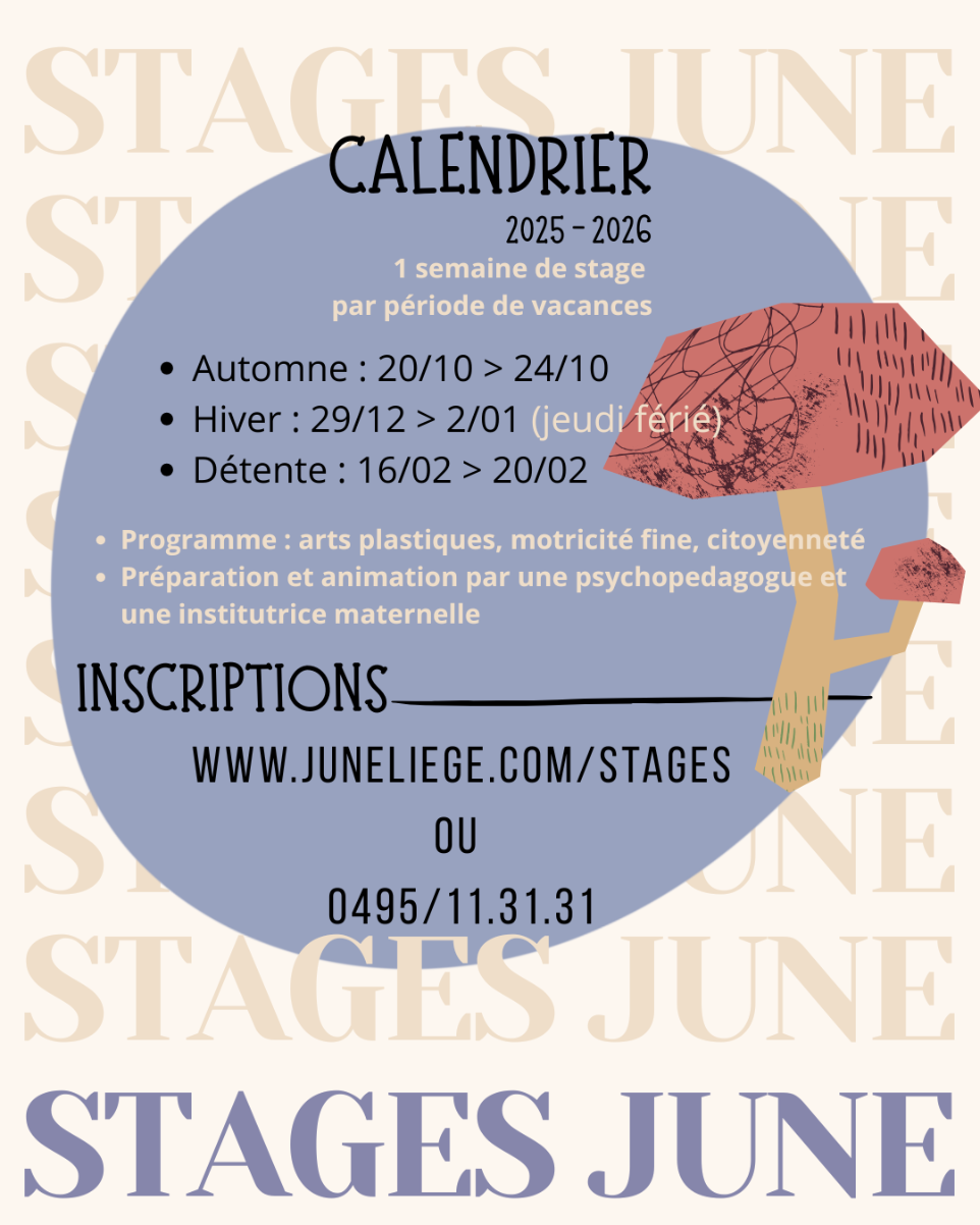*Les enfants qui participent aux journées complètes de stage doivent apporter leur repas de midi. Les collations (10h, 15h), elles, sont comprises.
